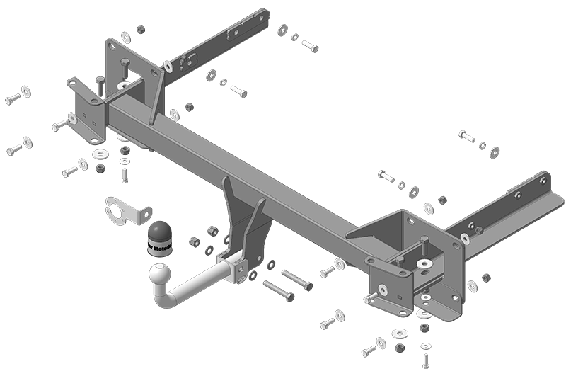 Установку ТСУ допускается производить только в сертифицированных установочных центрах. 1. Снять задний бампер. Демонтировать усилитель заднего бампера (в дальнейшем не понадобится кроме моделей M-Class W-164).  2. В штатные отверстия в задней панели кузова автомобиля установить балку ТСУ, закрепив её болтами М10х35, гайками М10 с шайбами 10, установив уголки под нижние крепежные болты.