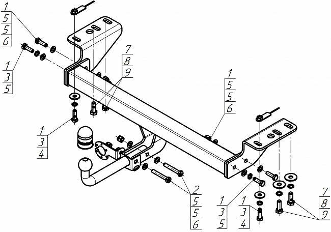 93116-A Фаркоп Motodor Haval H3 2024 - н.в (оцинк. Шар)