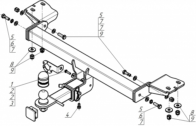 93126-E Фаркоп Motodor Haval H7 2024 - н.в (оцинк. Шар)