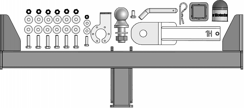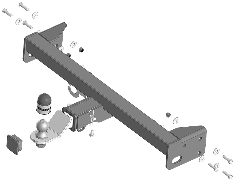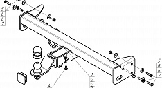 1. Снять штатную балку с буксировочными проушинами. На её место установить балку ТСУ при помощи болтов М10х40 и гаек М10 с шайбами 10.
