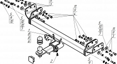 3. Закрепить балку ТСУ между боковыми кронштейнами при помощи болтов М12х50, гаек М12 с шайбами и гр. шайбами 12.