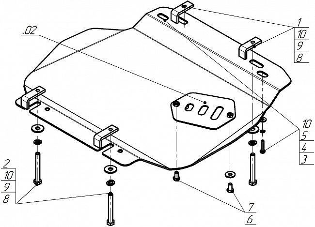 10301 Усиленная Защита картера Двигателя. 3 мм, Сталь.