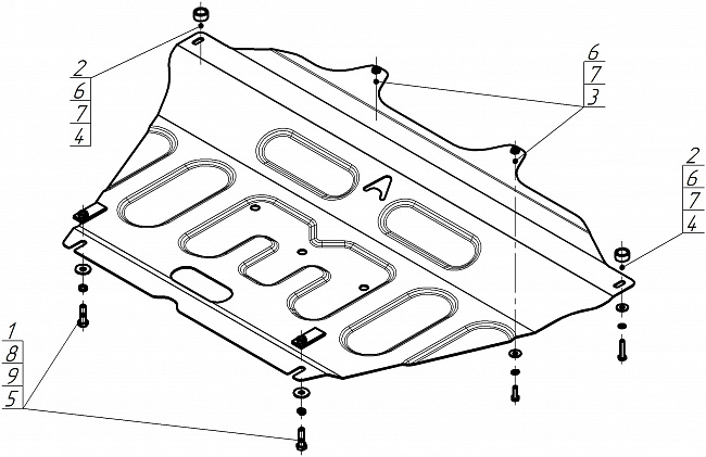 Установка защиты картера 2,3,4 листы в комплекте 700 руб.
