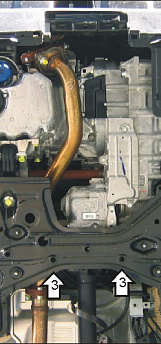 3.Закрепить к подрамнику задние точки защиты, используя ПЗ 106х20х6 А85 М10, Болты М10х70, Шайбы и Гроверные Шайбы 10.