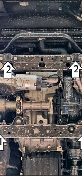 • защита картера — данный элемент предохраняет двигатель от попадания влаги, пыли, грязи, посторонних предметов снизу автомобиля.