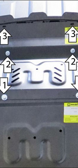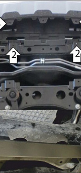 1. Прикрепить задние точки крепления защиты к кронштейну защиты двигателя.